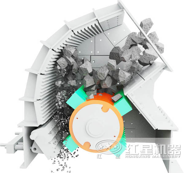 重锤破工作原理:重锤式破碎机是利用高速回转锤子的冲击作用进行破碎的。重锤式破碎机可分为单转子重锤破碎机和双转子重锤破碎机。重锤式破碎机工作时,锤头的高速运转对给入的大块物料进行打击,并使其抛向机体内壁的承击板上物料得到进一步冲击破碎后,落到下面的篦条上,粒度合格的产物从篦条缝隙中排除,篦条上的物料继续被锤头打击、挤压、研磨,直至全部合格。
