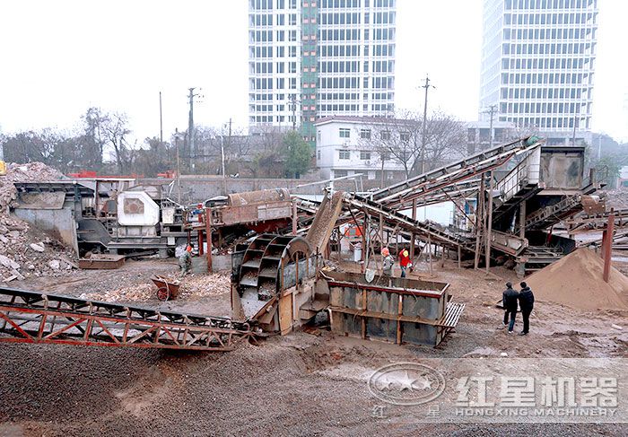 多台轮胎移动破碎机粉碎水泥块—银河官网机器客户现场