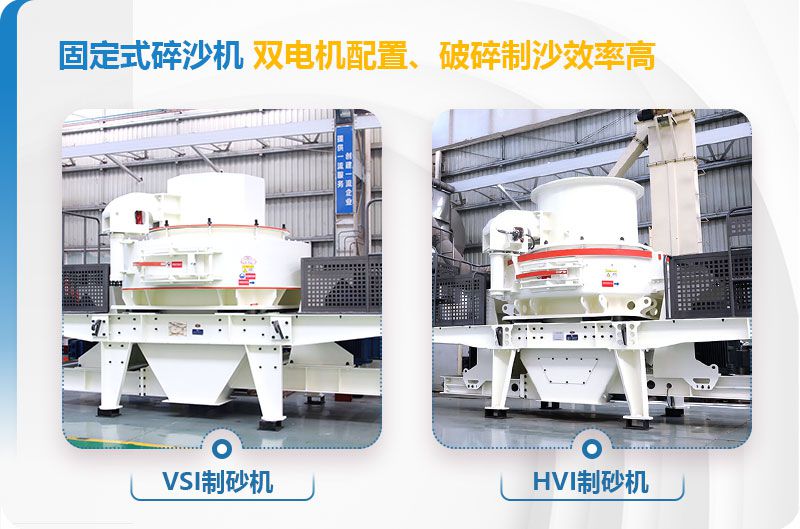 1.固定式碎沙机常用到有VSI制砂机(也就是冲击式破碎机)、HVI制砂机,这两种碎沙机需要固定安装在石子碎沙作业现场,双电机配置、破碎制沙效率高,能够对≤50mm以下的石子进行碎沙作业,出料粒度均匀,兼有整形效果,是比较好的石子碎沙设备。